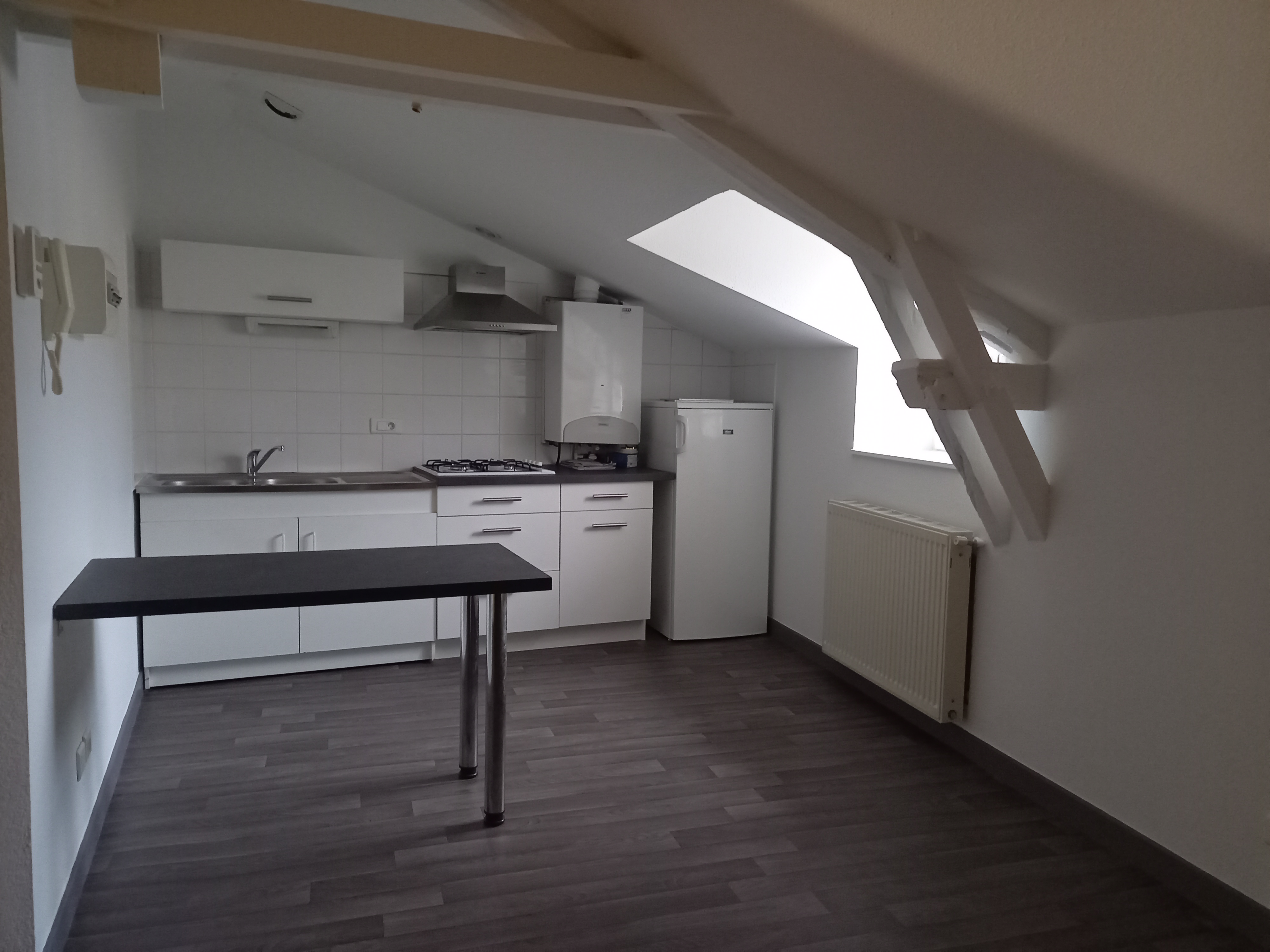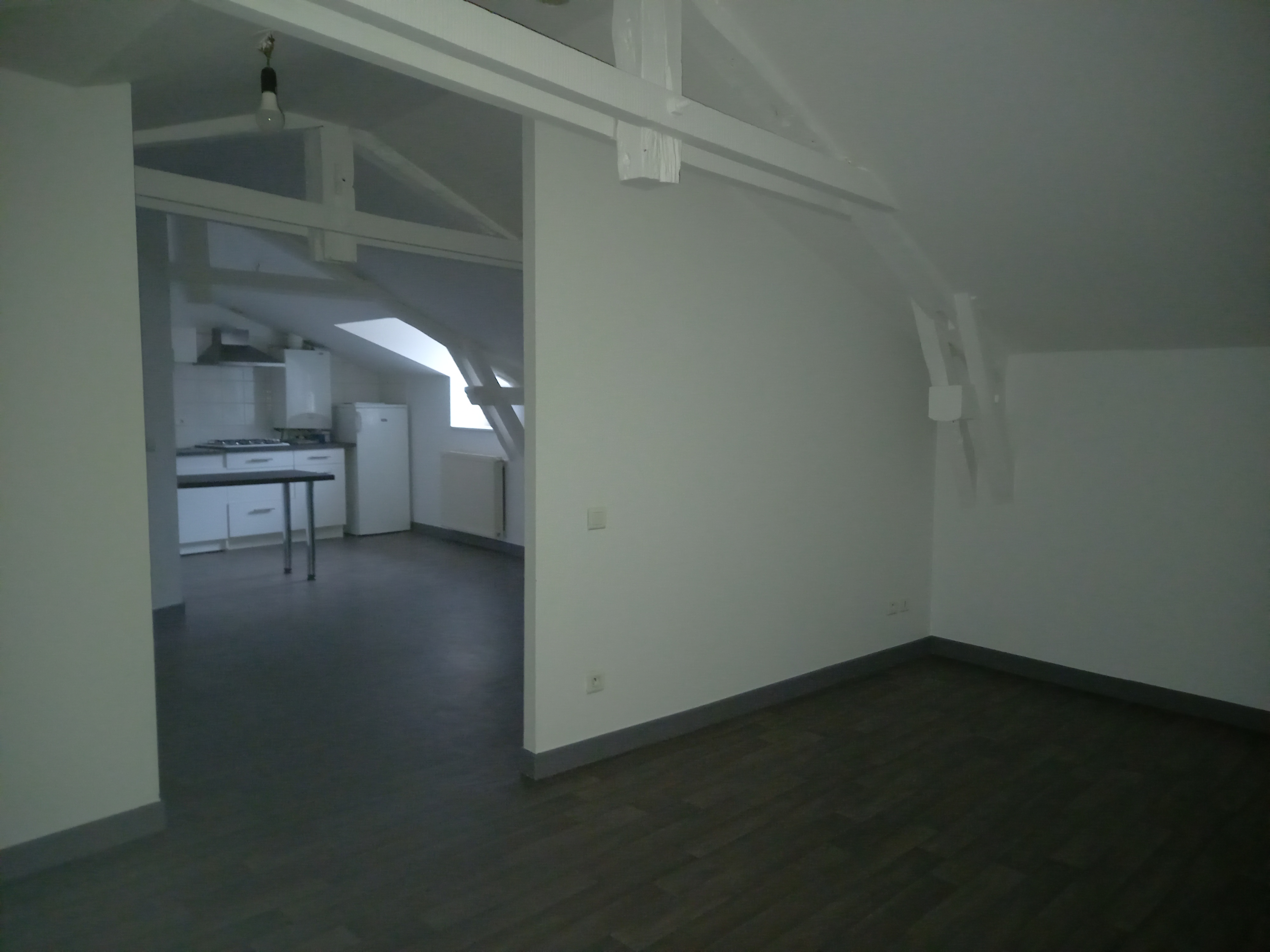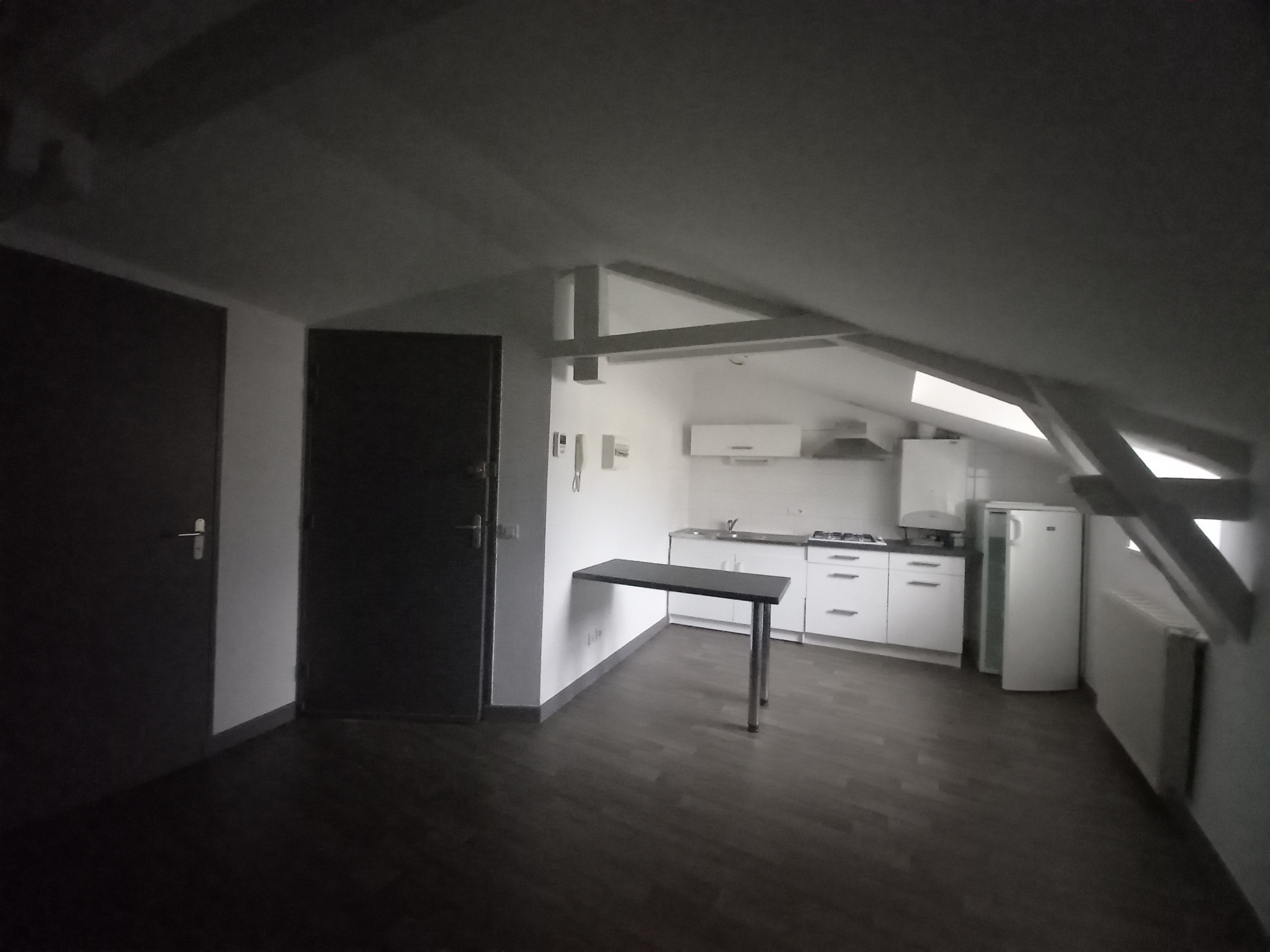 Au 3ème et dernier niveau d’un immeuble du centre ville, appartement T2 récemment rénové se compose : d’un séjour avec coin-cuisine équipée, une chambre et une salle de bain avec wc.