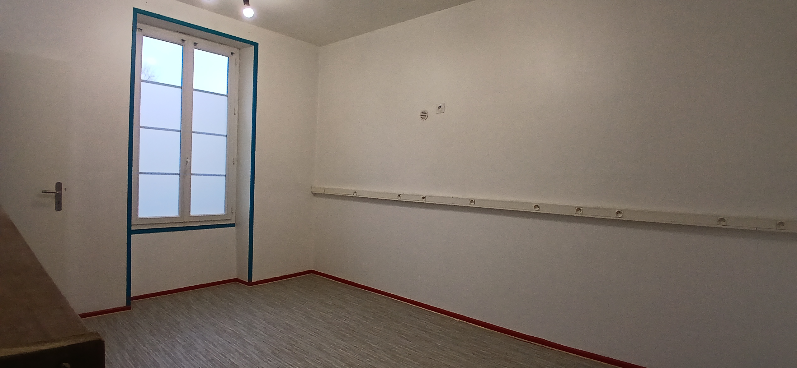 Au RDC d’un petit immeuble idéalement placé au centre ville, local professionnel/bureaux de 56 m² comeprenant : une entrée, une cuisine, 3 bureaux et un cabinet de toilette (+ docuhe).