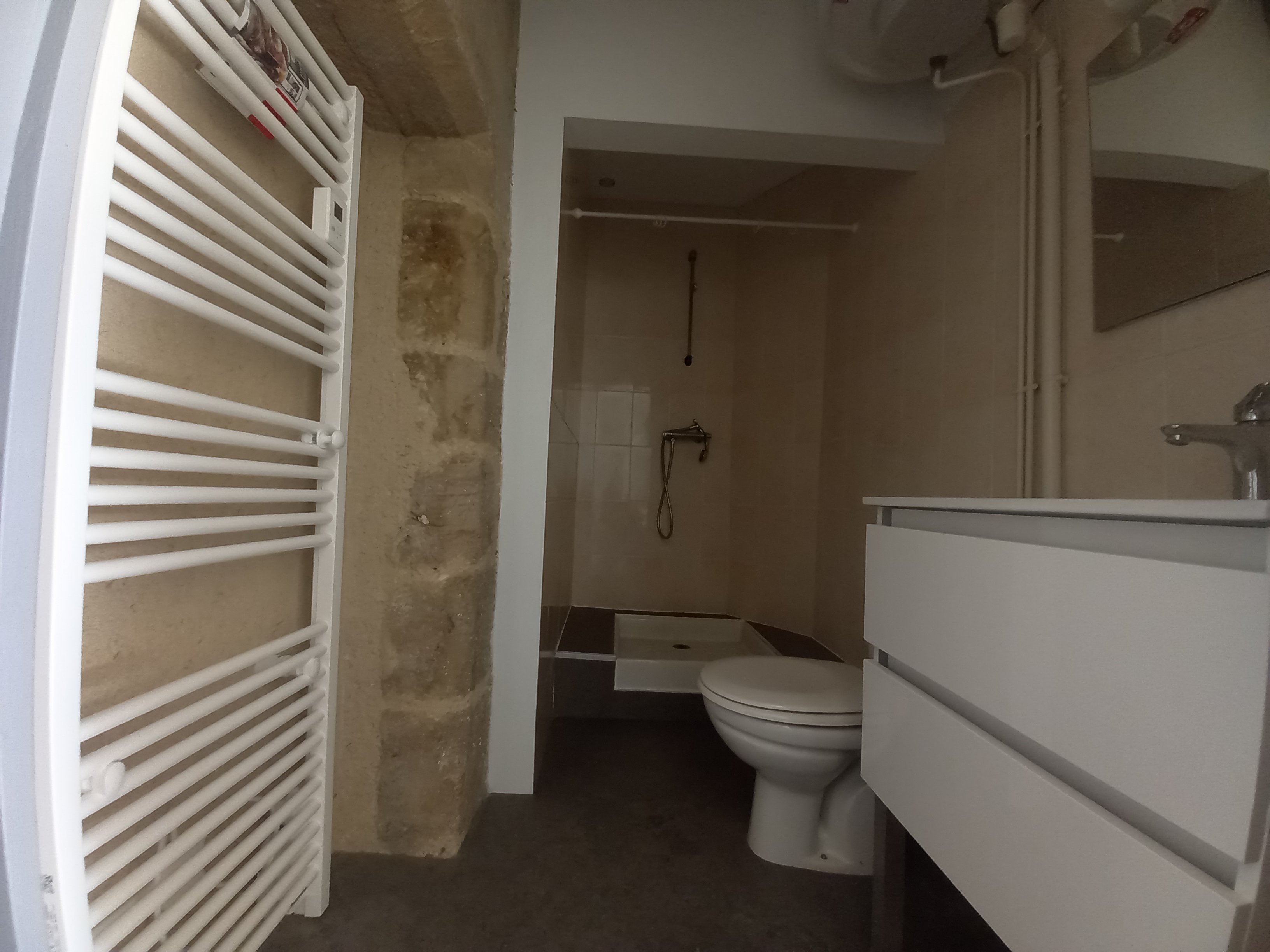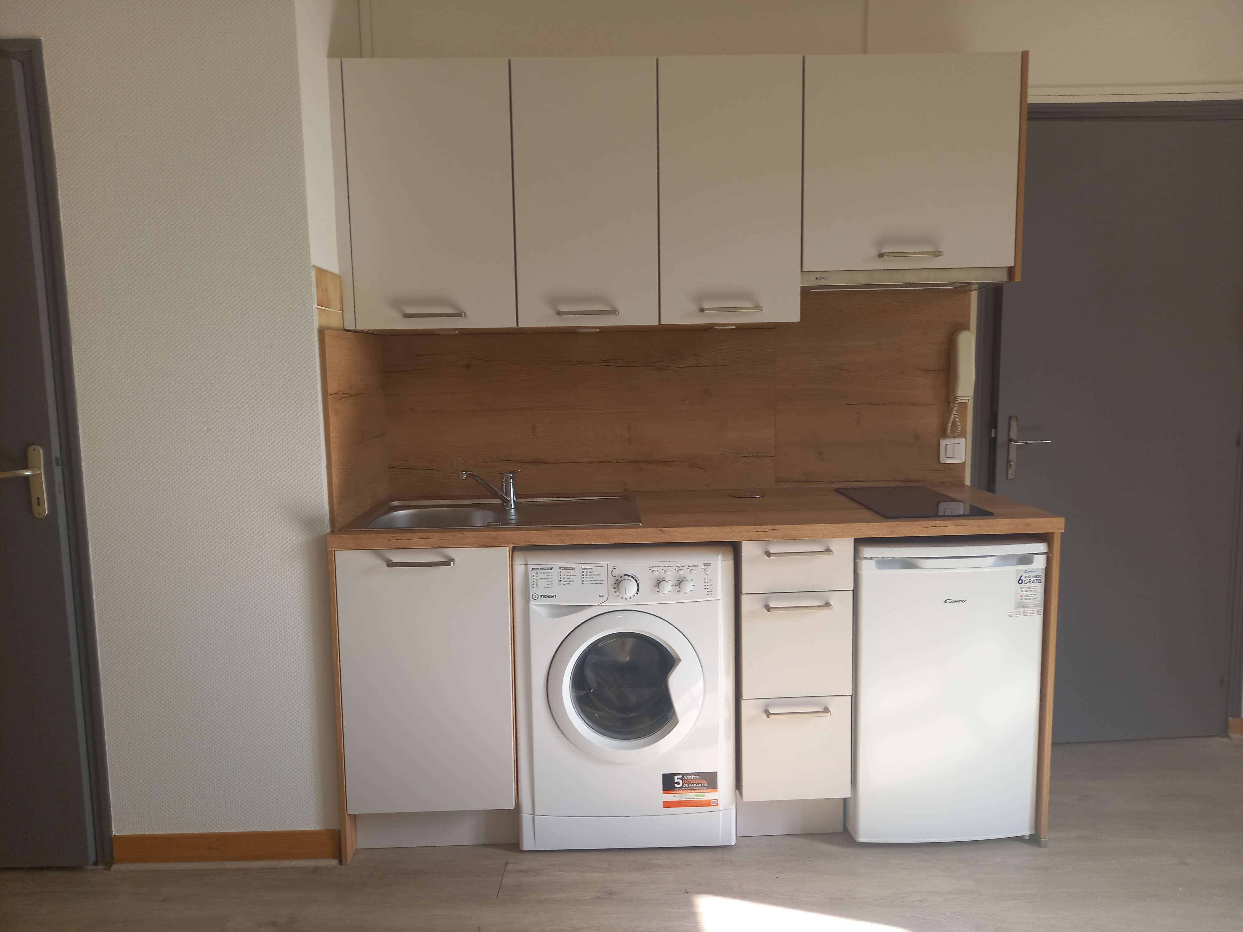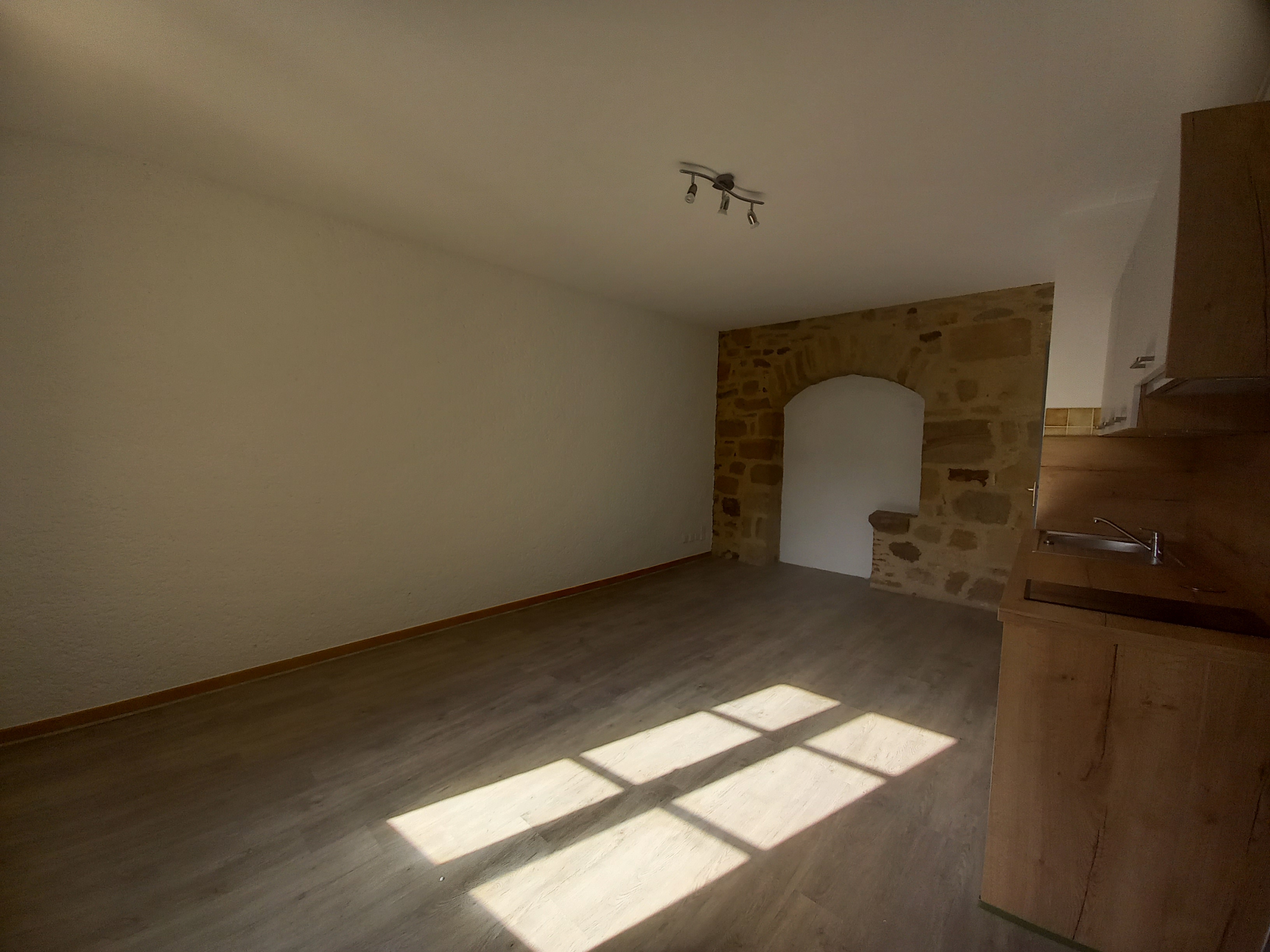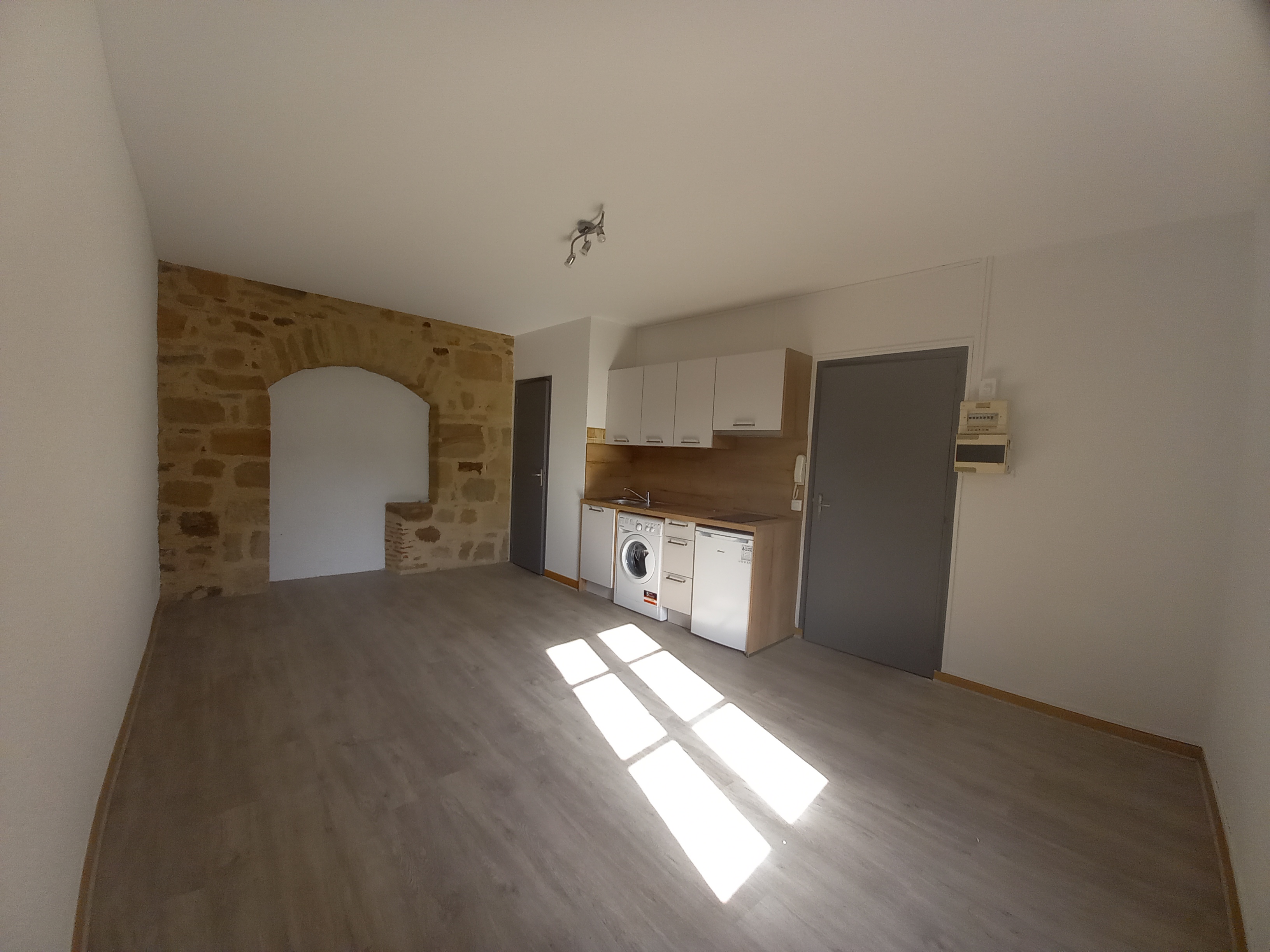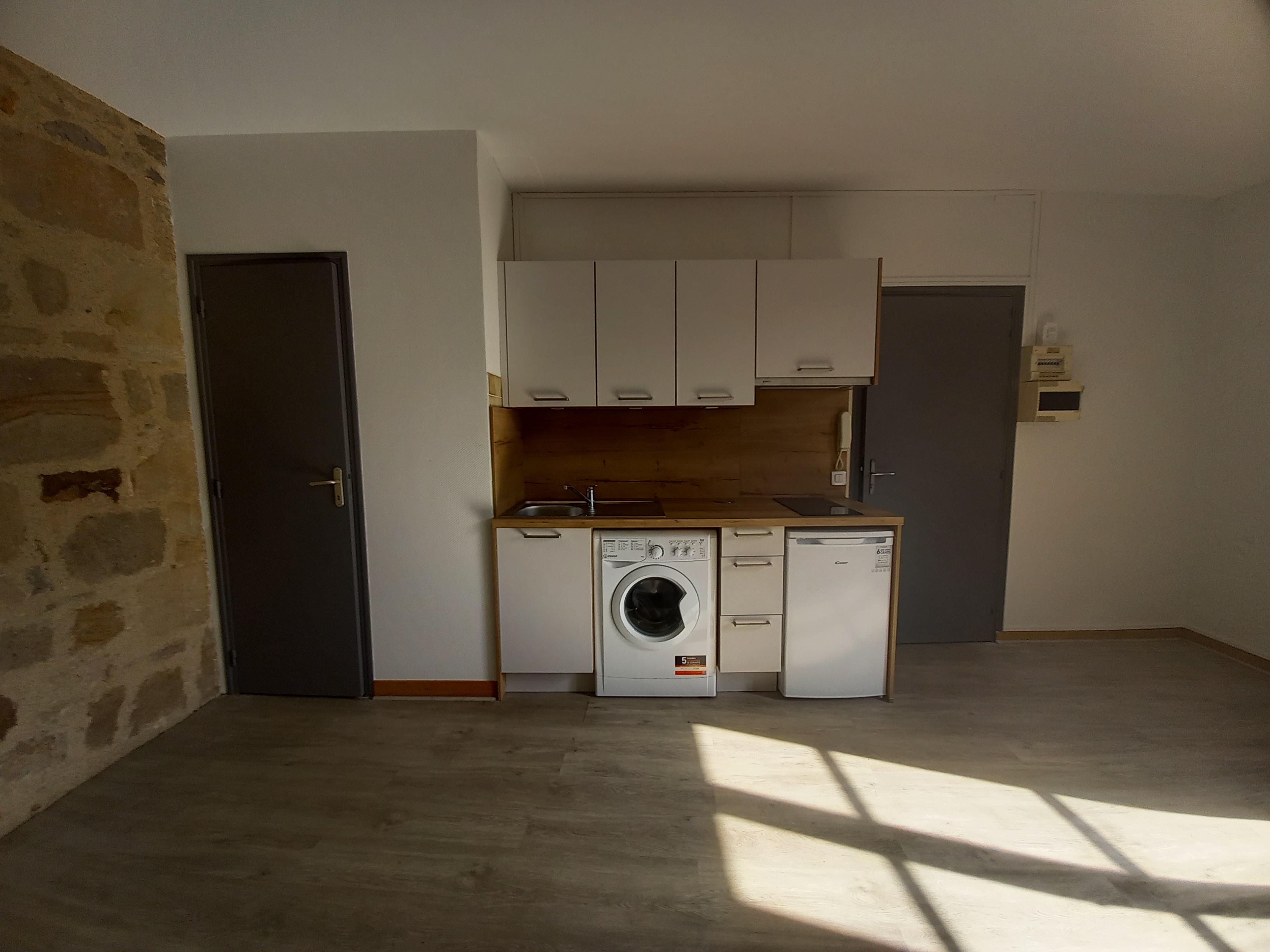 Au 1er étage d’un immeuble entièrement rénové, au centre de FIGEAC, studio de 23.20 m² offrant : une pièce à vivre avec coin-cuisine équipée et une salle d’eau avec wc.